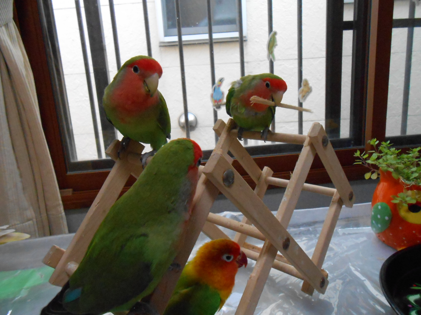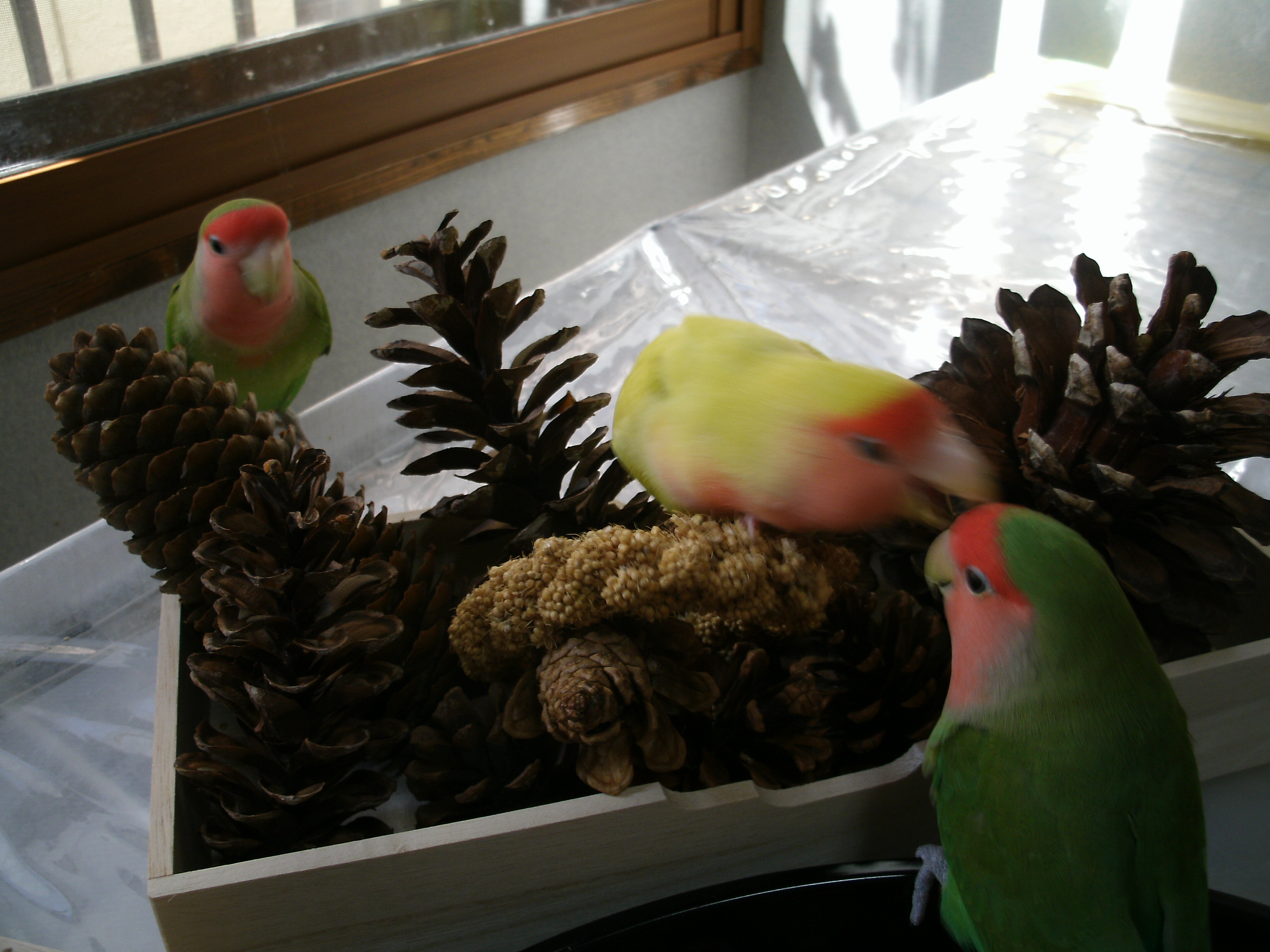 特に女子インコさんは縄張り意識強くてお互いのセーフティーゾーン圏内に踏み込むとすぐに取っ組み合いのケンカになりますんで目が離せないんですが、