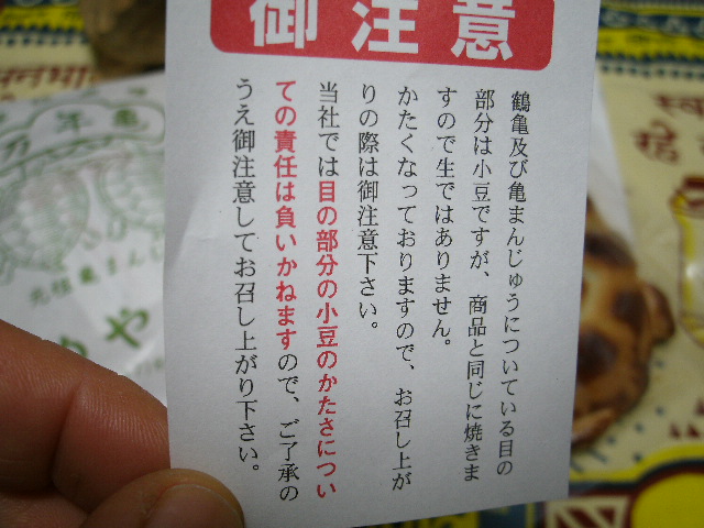 亀まんじゅうといい、注意書きといい( ´艸`)