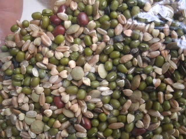 余談でございますが~~、緑の豆はもやしになる豆でしょう。