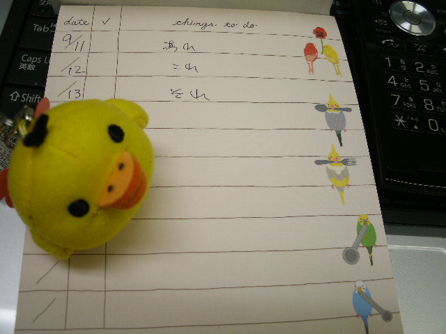 ほかにもおばさんの健忘症対策としてかわいい鳥さんイラストの入った