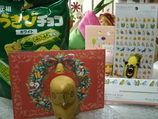 鳥グッズ(付箋やらシールやら)、他のお友達からのプレゼンツと被ってなかったか、とても心配‥;