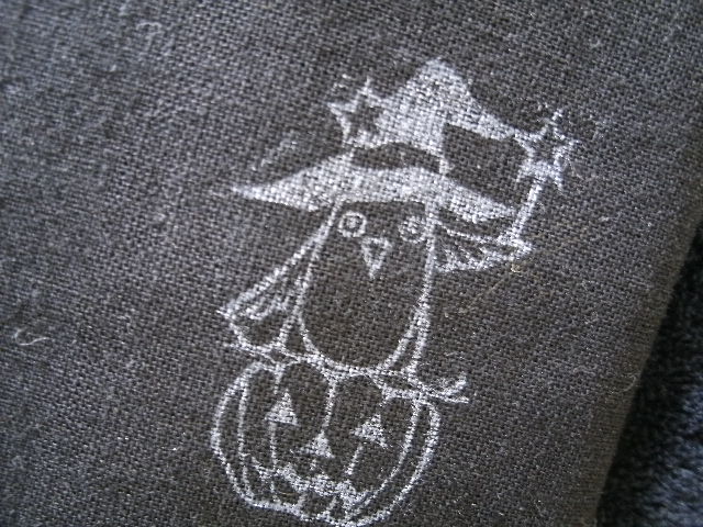 おばさんはハロウィンカラーのガチャガチャした色を持ち歩くのはいい年しててもぜ~んぜん恥ずかしくありませんが、ちょっとね、黒い布地にスタンプ押してみたくなって