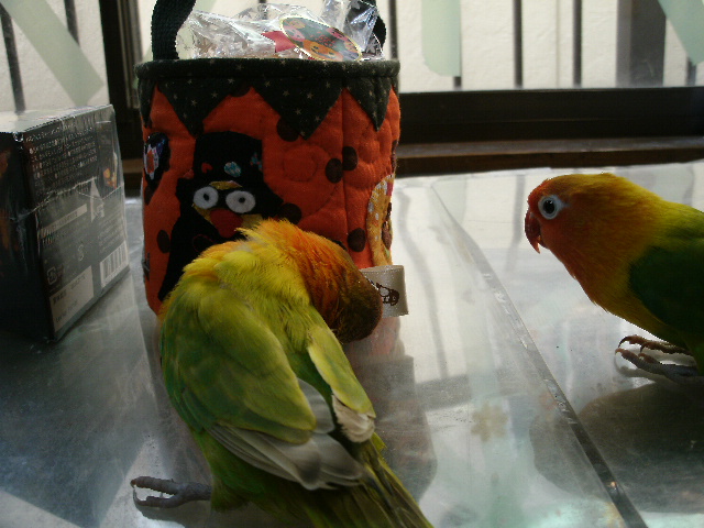 私の中でのまだまだ長生きして欲しい熟年夫婦筆頭なのです。ボタンインコってハロウィンに似合う色だから楽しいしー。