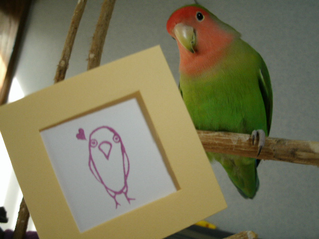 まんずkaoryさんの製作するインコさんグッズは手が込んでますからね~、カードまでバッチシ手作りのかわぅぅ~~いの参加賞でいただきましたのよー(参加者と言う名を借りた祭り荒らしのおばさんなのにーー