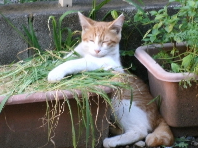 どうやら仔ぬこがホモのプランターを寝床やら遊び場にしてたらしい。