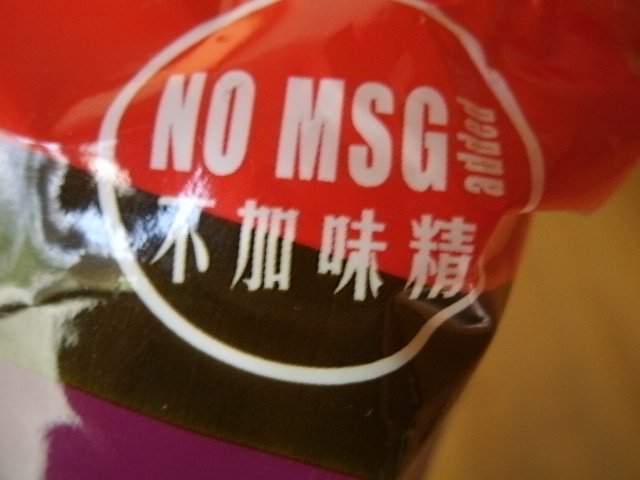 これは中華料理店症候群みたいなのに過敏な人用表示なのか、宗教的な関係での表示なのか、日本の食品ではアレルギー表示か遺伝子組み換え表示しか見ませんのでほほ~ぅって感じですかしらねーー。