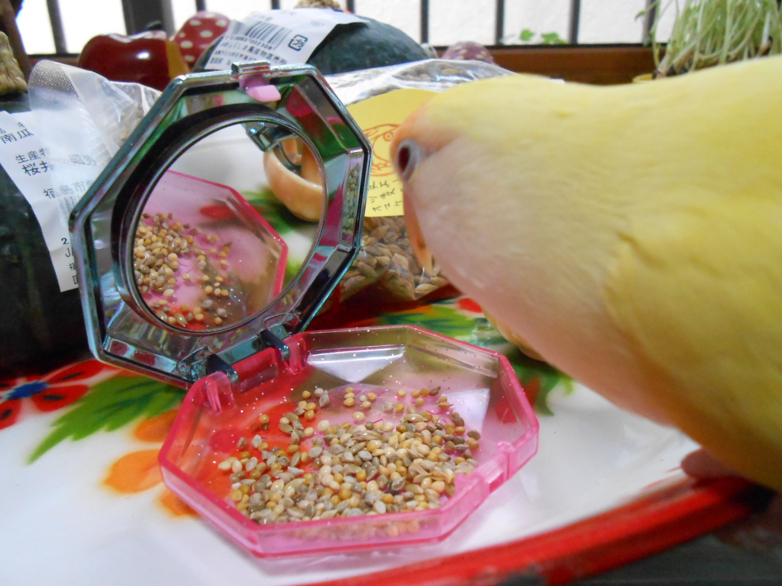 なになに?身だしなみを整えながらおやつも食べれちゃう・・・とゆーことらしいので、おやつを仕込んで置いてみますと