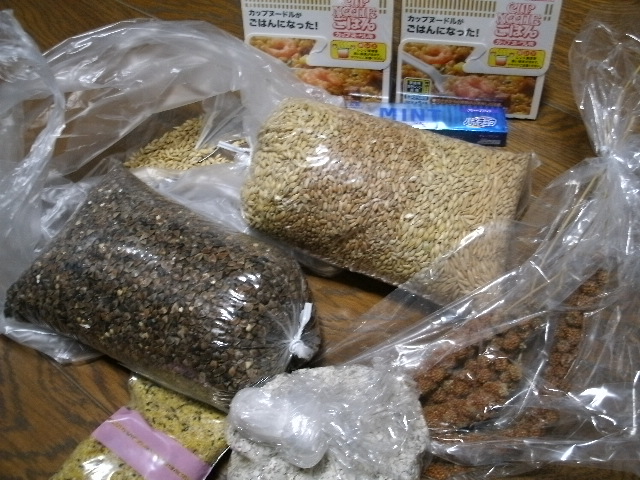 ぜんぜん縛れてないほどに詰め込んであります。麦類を何種類か詰めてくれたんでしょうね、グラデーション具合がお得感引き立てております