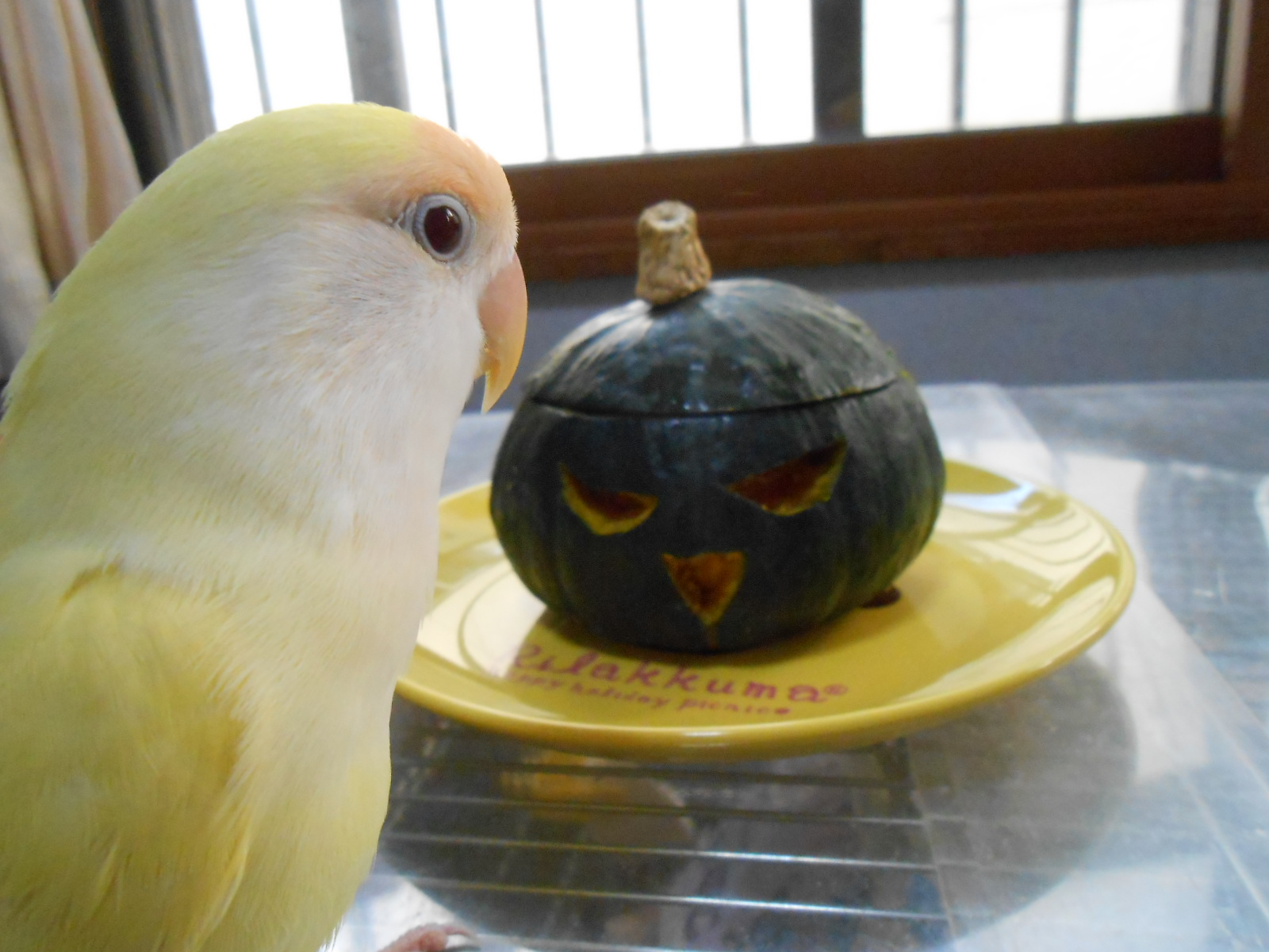 カボチャの種にはいろいろと栄養が含まれてるそうですが、カロリーが高いので鳥さんにはあげすぎ注意!でね