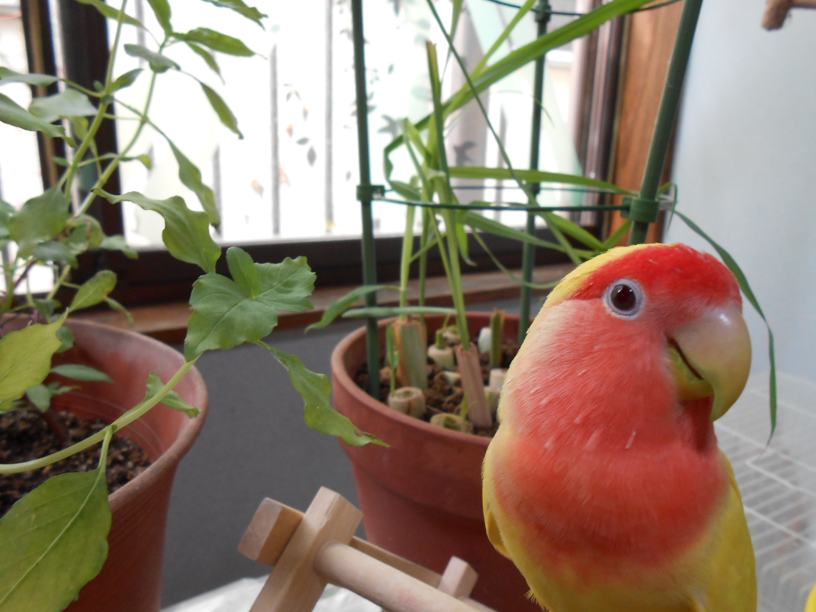 バジルはなかなかどうして、鳥さんが食べる・・・までいきませんがチョイチョイイタズラしてるようです。