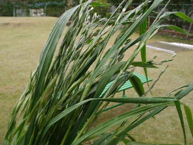 ハコベさんは夏ごろには一旦枯れちゃいますが(ク〇ッチさんちの枯れたのとはワケが違います)、ハコベさんが枯れるころにはこぼれたシードから芽が出てアワだのヒエなんかが出来るんですよ~~。