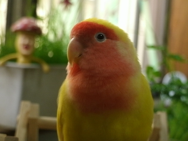 そしてアレですよ、どーしてもお部屋での放鳥は単調になってしまいますので、鉢植え葉っぱがちょっとした遊び場になったりフォレイジングごっこもできちゃったりですよ♪