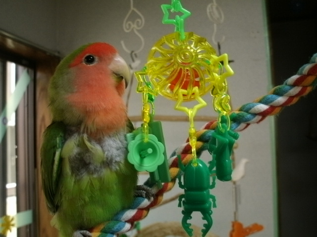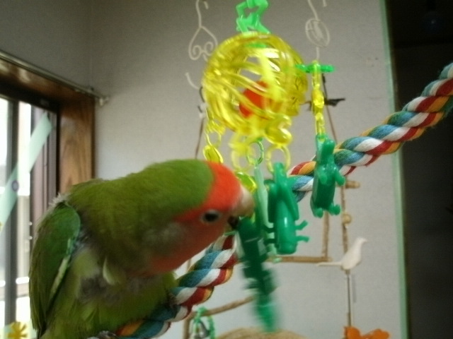 小型のラブバードさんたちは動きが大変アクティブですし、プロレスの試合なんかもありますんで筋トレはかかせませんから