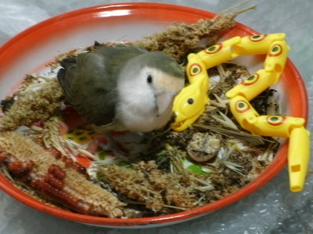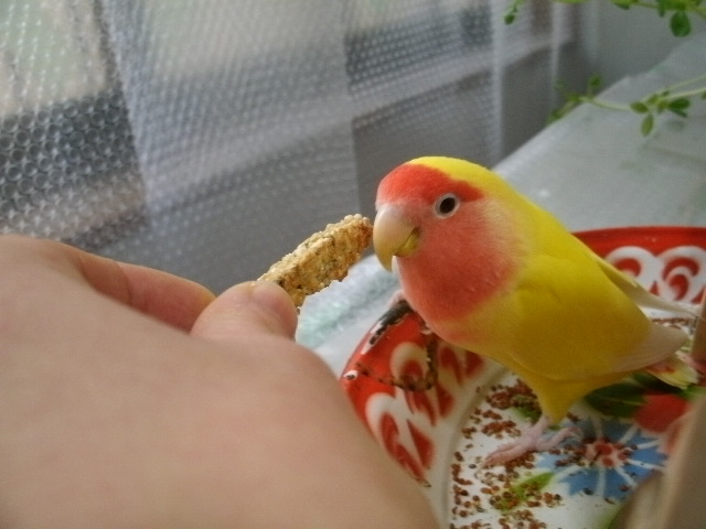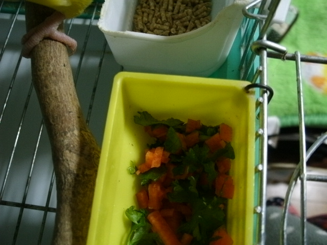 しかしまだ油断ならないので、気に入らないごはんをケージにセットしつつ、お外では少しだけシード解禁してます