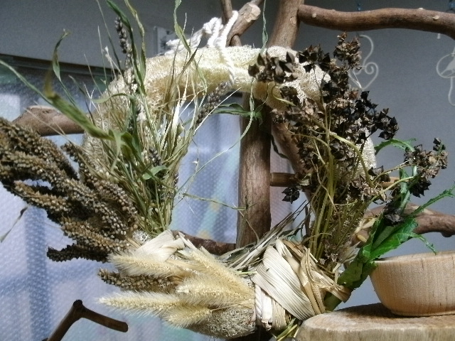 お飾り用といわれましたが実が崩れたところは鳥さん用にと取っちゃったんですけどね、みなさんあまり興味がないのか気づかないのかしばらく放置されてましたが