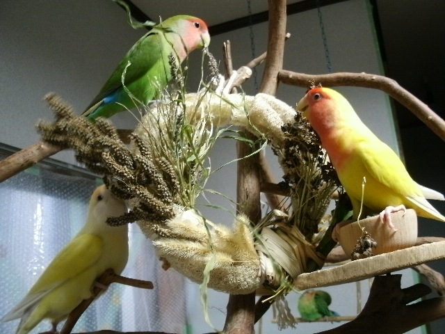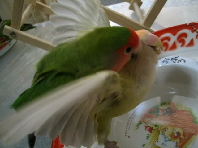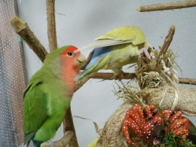 ちょっと見はヒドイ仕打ちのようですけども(ヒドすぎるか??)、発情の欲求はそれはそれはとても強いので、鳥さんもコレくらいのごはんトッピングには負けませんって。