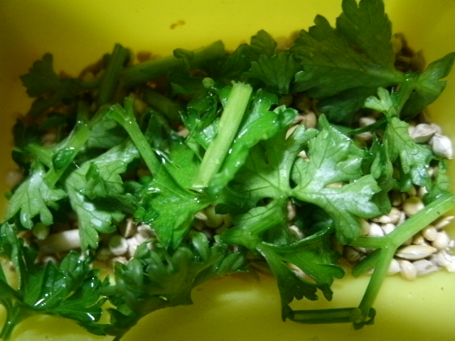 これ完食してたら明日あたりはニンジンやパセリをシードが見えないくらいこんもり入れて、ごはんをお野菜の山の中から探してもらおうかと思っとります。