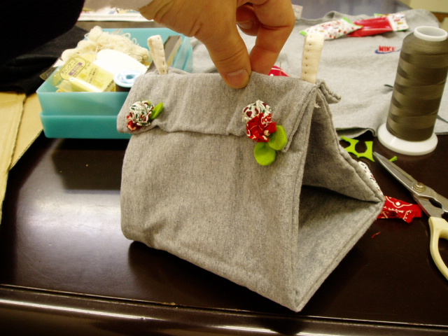 また職場で昼休みにテント製作作業しました、これ みるくさん用、お花の飾りをあしらってみましたけど、すぐ破壊されそうな余計なものをくっつけちまった