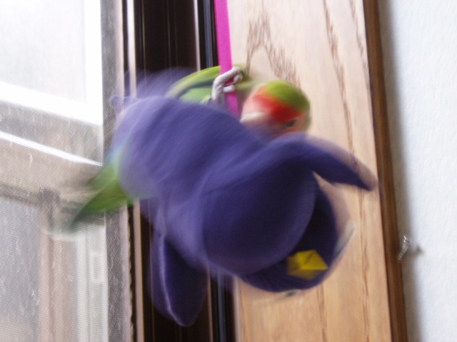 げんきちゃんがおばさん製作のぶらさがり健康鳥にぶらさがって遊んでおります。(そのうち違う鳥さんにものっかっちゃうのかしら・・・うふふ)