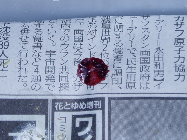 Σ(・ω・ノ)ノ! ドキッ!血だ・・・