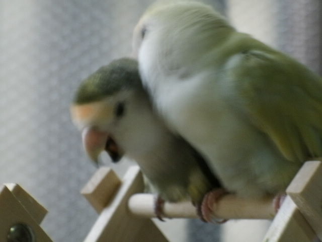 なんかねー、男子インコさんのことは珍しくハラハラと心配しちゃうおばさんなんですのよ(←えこひいき??)