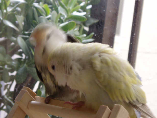 女子インコさんとご一緒にお住まいの皆様、発情抑制に苦労されてる方もいらっしゃると思います。なーんかいいアイデアでもありましたら共に協力して乗り切りましょう!!(ウチはさー、鳥さんがおばさんっ子じゃないので、おばさんと一緒行動にされるとイッキにその気が失せてしまうみたいですけど・・・それでいいのか、オレ?)