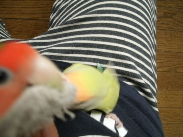 先ほどもんちゃんだけを放鳥しようと出したところミーちゃんがキキキィーーーーと鳴きが止まりません