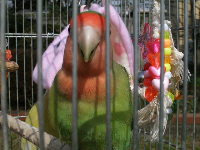 ブランコは工夫という名のセコよ、鳥グッズも数そろえると高いじゃないのー、買えないわよっ ウンコまみれになるのわかってるし~。