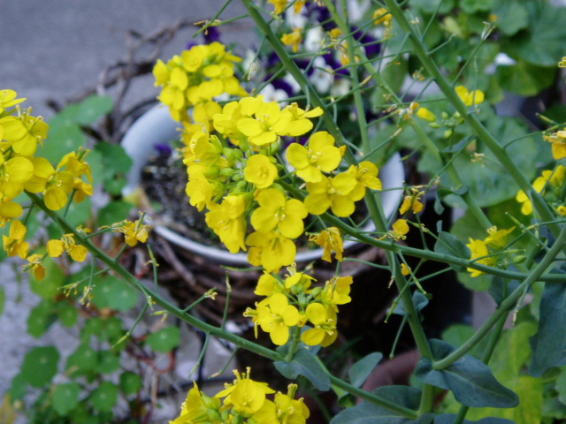 うちの小鳥さん用の小松菜も放って置いたら花になっていた。