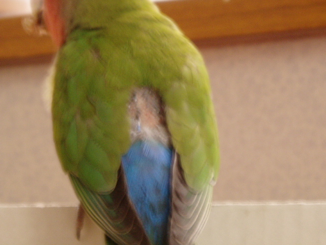 皆様の提供してくださった毛引きにまつわる情報によりますと、Chacoさん宅のミッフィちゃんは抱卵中にあまりかまってもらえなかった事にムッとしたのか、おズボンを脱いでの抗議に出たそうです。Chacoさんはそんなミッフィちゃんを他のコにかくれてイイコイイコしてあげたらおズボンをはいてくれたとさ。小鳥さんてデリケートですねぇ。でもぅ・・・ぴーちゃんは全然手乗りっ子じゃないしぃ、でもぅ・・・もしかしたらギュ~されたかったかもしれないしぃ で、ギュ~
