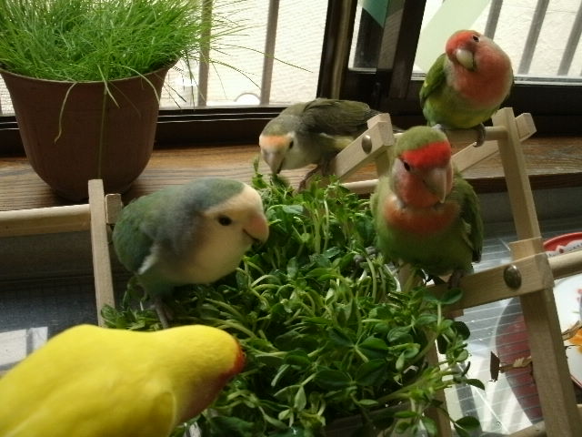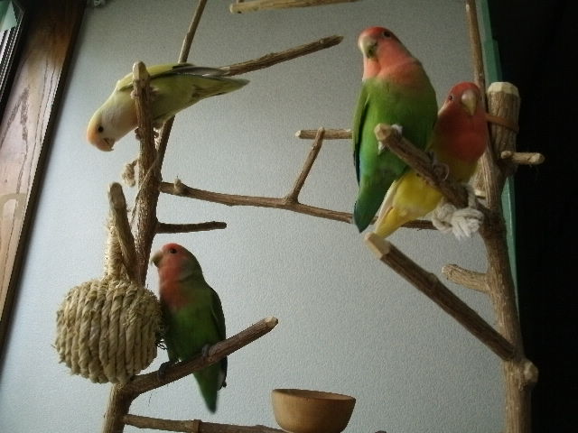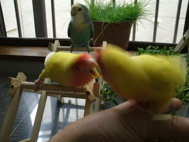 鳥さんたちの遊び時間もおばさんが仕事に行く前の朝の時間に放鳥なので、けっこーさわやかげに遊んでおります。