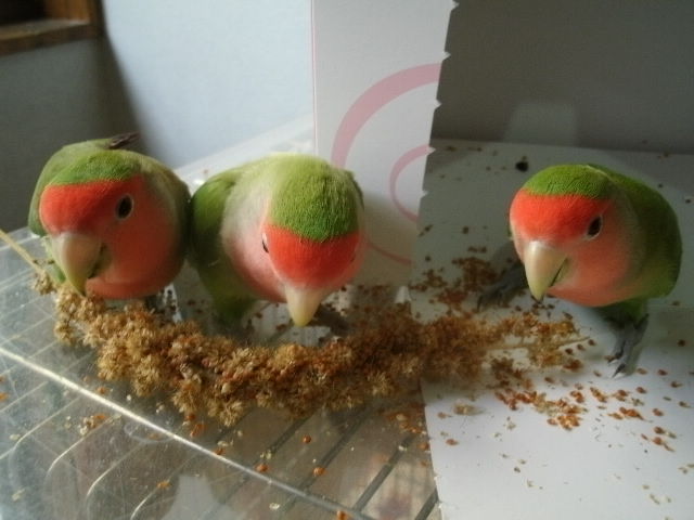 ヤングさんたちが飛び回ってる時にシニアさんたちはあまりケージから出てこないのよねぇ。出てきてもすぐ引っ込んじゃったり。