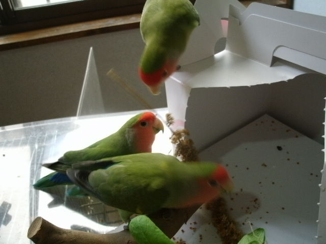 いままで見た飼育書でコザクラインコさんの平均寿命は8歳くらいと見たと思うんですけど、まーやさんのお顔など見てますと若インコさんに思えるくらいです。まだまだがんばりますよ~~~。
