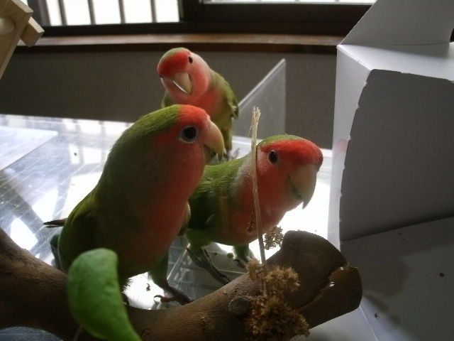 鳥さんとたわむれてる時って自分もかわいいコザクラさんになりきってるんですけど、ふとガラスに映る自分の姿が目に入ると愕然とするわね・・・