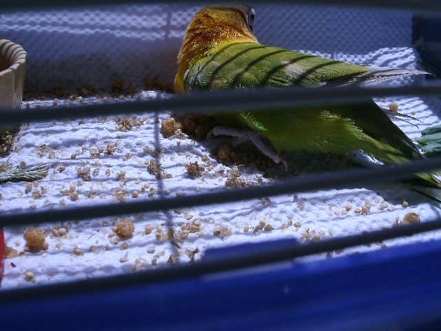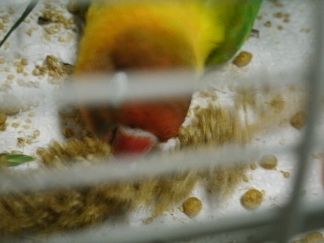 ひとまず餌は底にばら撒きで、お水もヒナをお世話するように高さのない容器に入れてますけど・・・・餌は食べるがお水を飲んでるところは見ないのよ~~っ