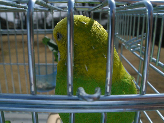 止まり木と金網部分の間を飛びついて行ったり来たりしている。元気はある。うむ。