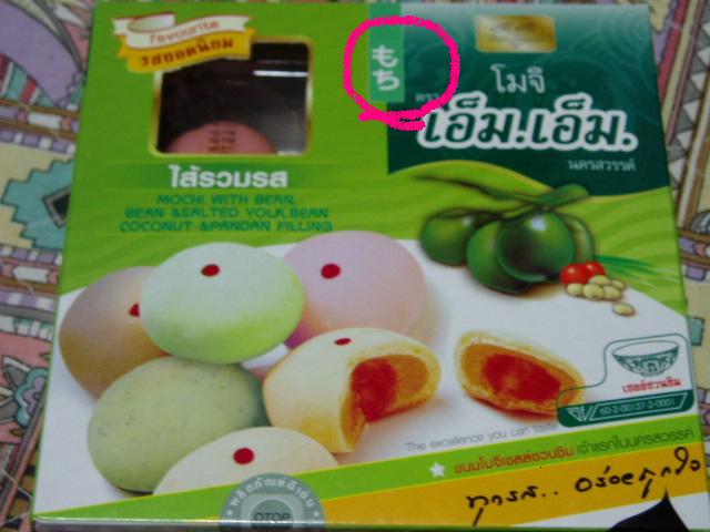 タイからのお土産を頂きました。わりとポピュラーなスイーツのようです。日本で言えば‘おまんじゅう’みたいなもので、日本のソレより皮が少しドライでして(少しじゃないか・・・パサパサ状)、中のアンはココナッツ風味だったりドリアン風味だったりと南国味でおいしいものです。日本のお菓子を真似たものなのでしょうか?パッケージにもちって書いてあるんだけど・・・いや、もちじゃねえっ、まんじゅうだ!と思うんだけどね。