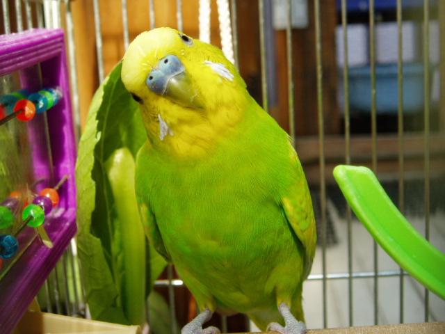 どの鳥さんとも出会いはご縁だと思っておりますが、タケちゃんもこれまたご縁。一年前のこの日、仕事の帰りに何を思い立ってか普段はなかなか行かないちょっと遠い大型ショッピングセンターに遠い寄り道をしまして、何か買い物に行ったはずだと思うんですが、まず入り口に近いペットショップからのぞいていこうと、ついでに鳥さんグッズも仕込んでいこうとウロウロしてますと大きめのケージに入った細っこいセキセイさんのカゴにこんなメッセージが・・・『里親様になってください』。・・・なんで?すかさずお店の可愛い店員のお姉さんに聞いてみた。‘あの~、里親って私でもいいんでしょうか?’と。お姉さんはにっこりと『もちろんです』と。なんだか入社試験の面接にでも受かった気分ですわ、‘・・・いいんでしょうか?’とたずねて『お客様はちょっと・・・』とかなんなくて。
