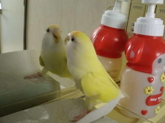 って、まるこさんちの長女よ~♪さすが血が濃いので朝のお掃除は早いうちに肩にでものっけて掃除せにゃ、ケージに手ぇ入れたらミンチになるのよー。