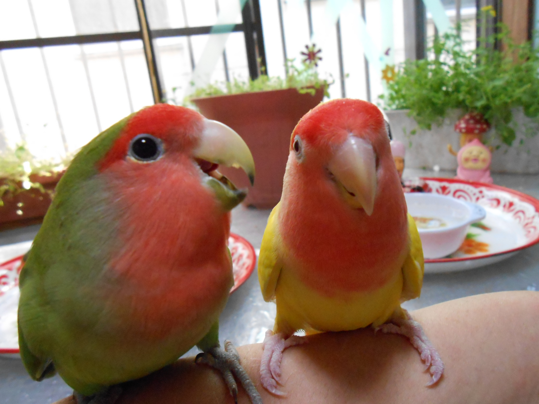 だーちゃんとっても可愛いんですけど、お触りと寄りが禁止のガラスインコさんなのでお手を触れないように~~
