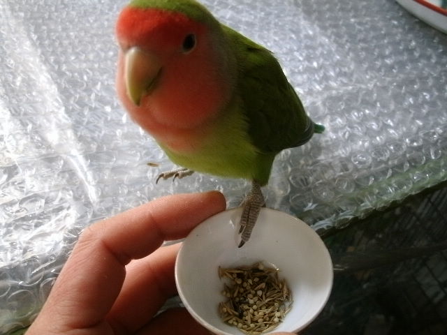 おばさまのお宅は、インコちゃんたちがゴージャスなお食事なさってたんですね!