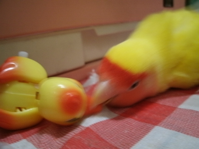 風呂入ってるげんきの奥ではぴーちゃんとそらちゃんがハコベの実食べてます。いまだ人気のハコベさん