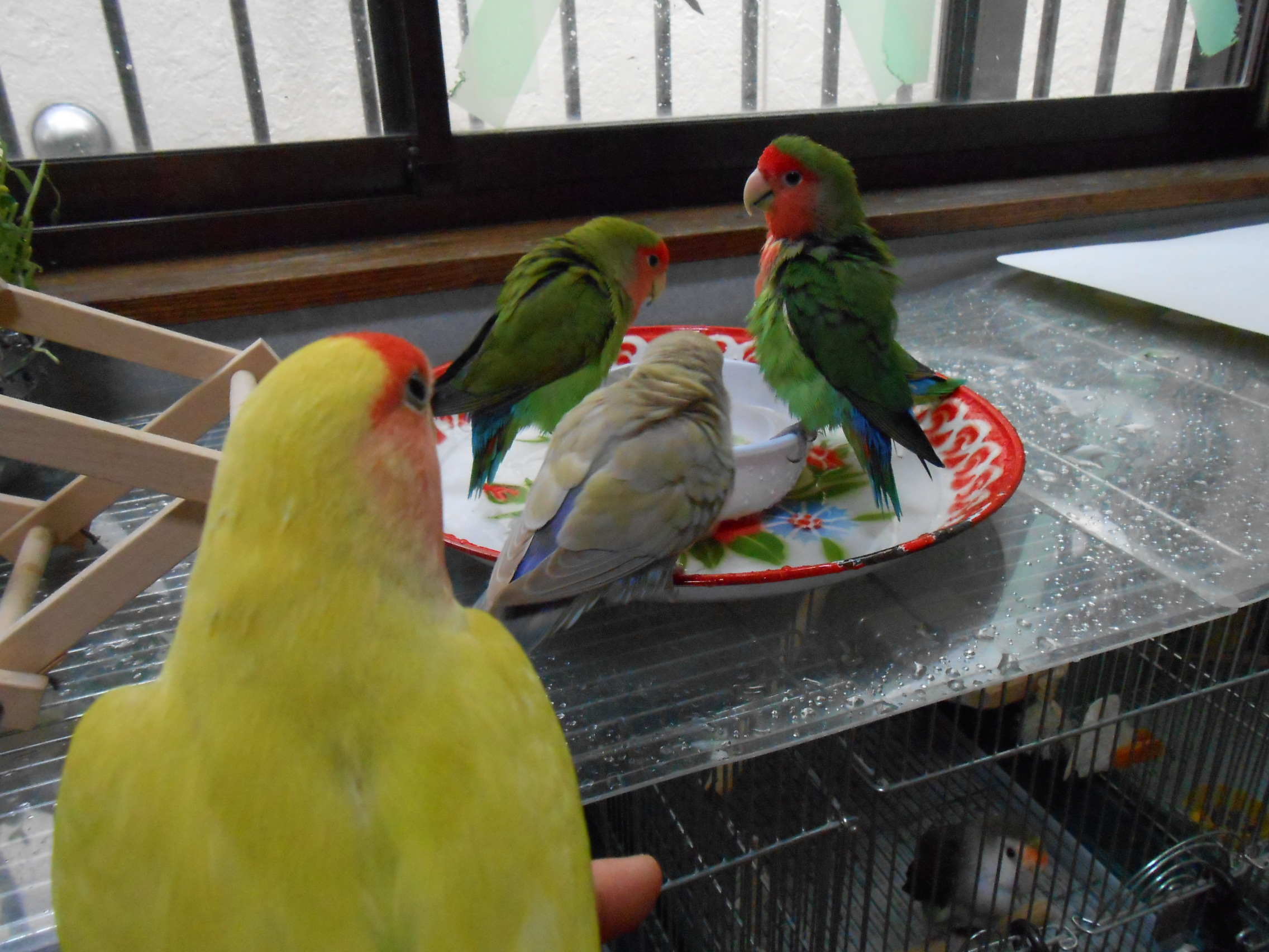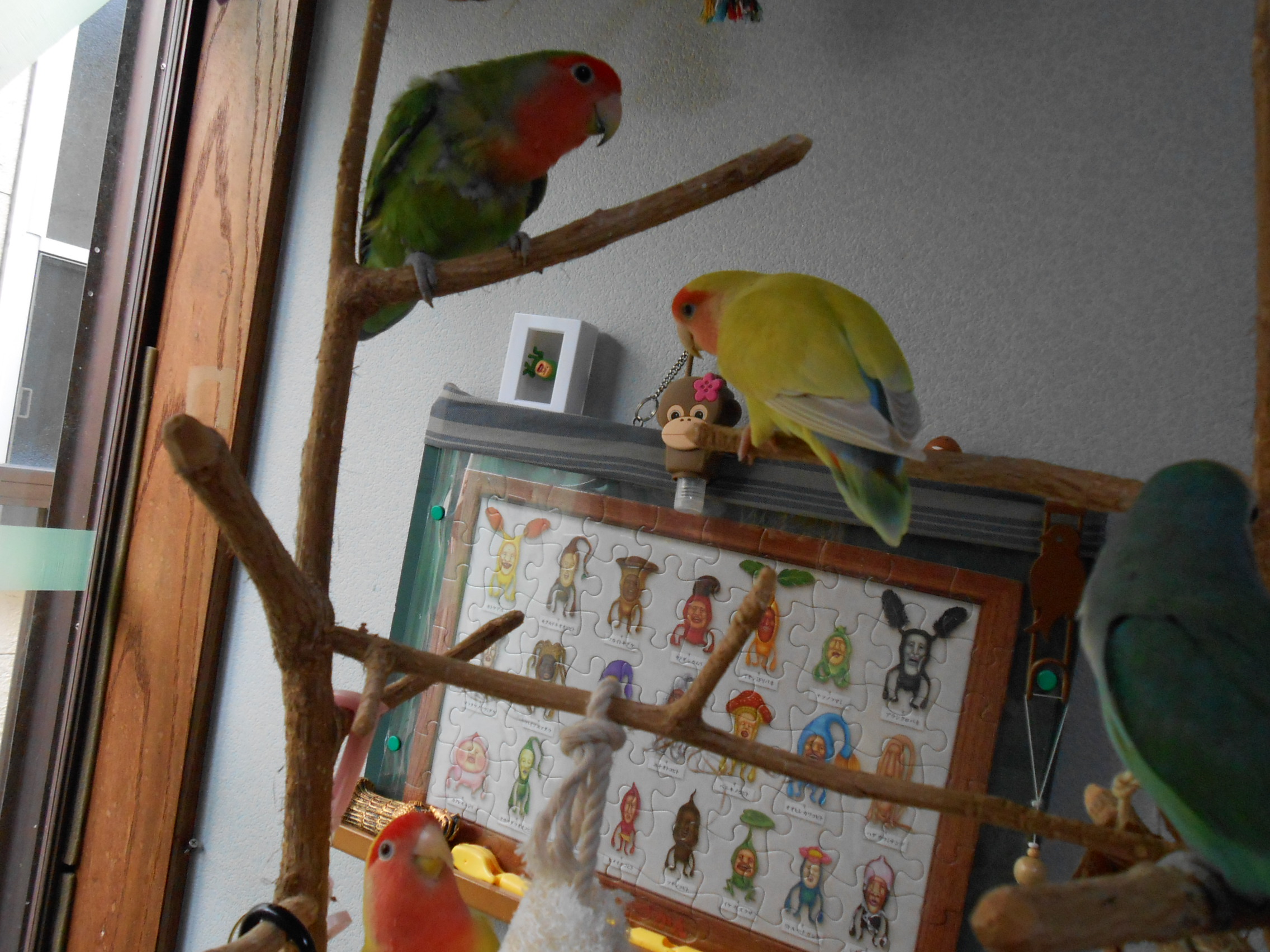 初日はまだカタい感じですけど、2日もすれば鳥仲間になれそうなまるさんですー。よかったね
