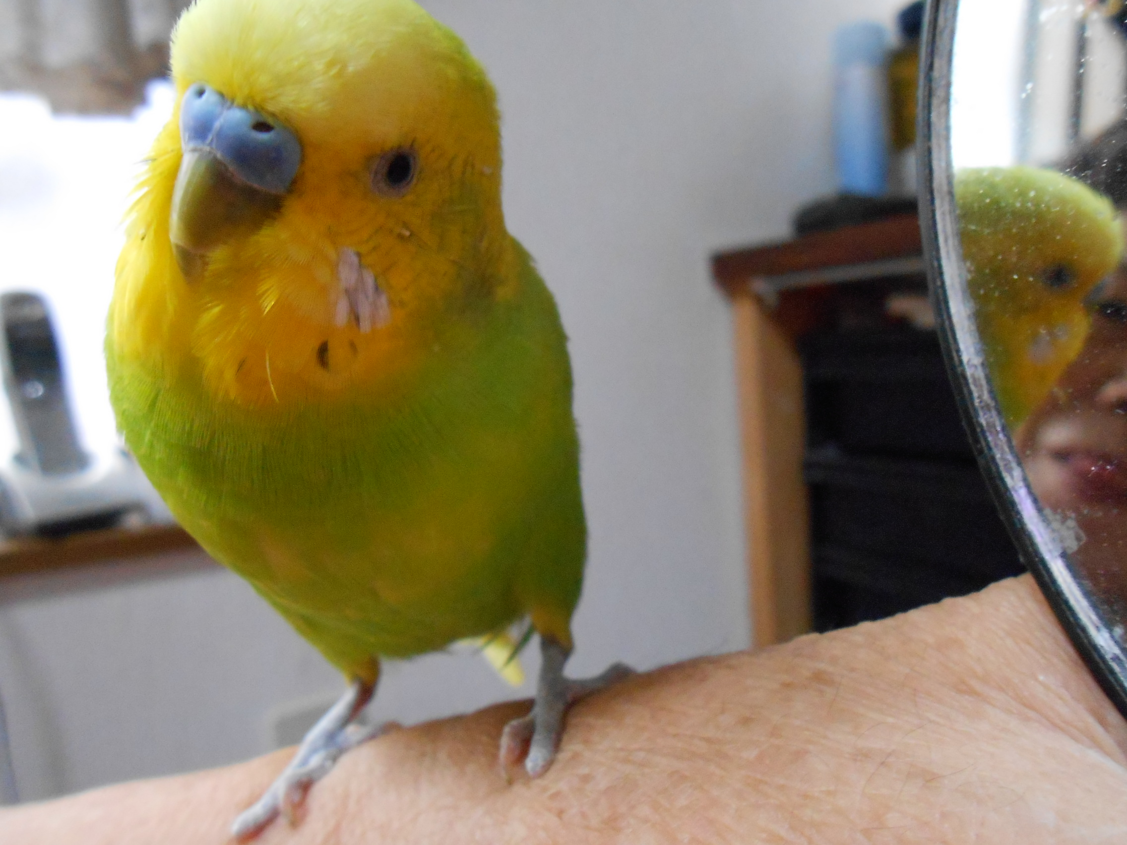 まずはセキセイさんの朝の放鳥場所、ばーさん部屋ではタケちゃんとお預かりしたブルーのちょこさん(男子)がひたすら交差しながらバタバタと飛び回り、3周くらいしたらカーテンレールの上でじっとしてましたー。