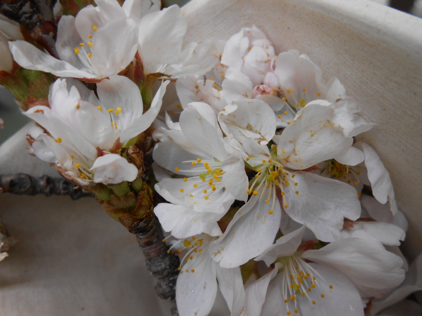 3日前くらいの強風でさくらの蕾が付いた小枝がずいぶん落ちてましたので、拾ってコップ水に挿しておきましたら