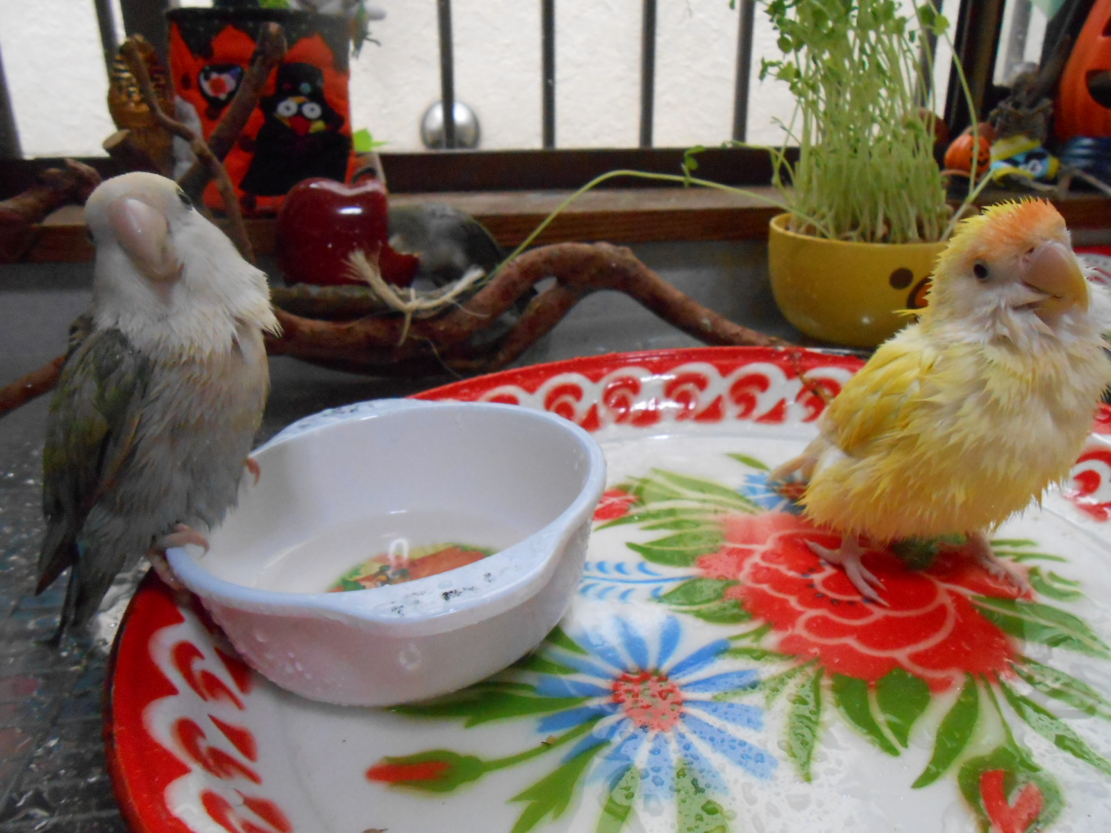 )・・・まぁ今日なんかちょっと蒸し暑いくらいなのでいっか。なんですが、ちょっと蒸してるっぽいためお風呂上りの鳥さんたちが、