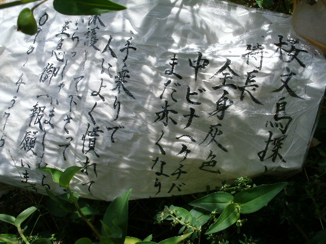 手書きでどんな気持ちで書いたんだろう?昨日の夜は豪雨でしたからね、いなくなった中雛のブンチョさんのことを心配していたのではなかろうか?