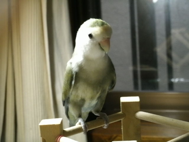 寝かしつけ係の協力のおかげで、日の入りと共に寝る早寝インコさんでございます。