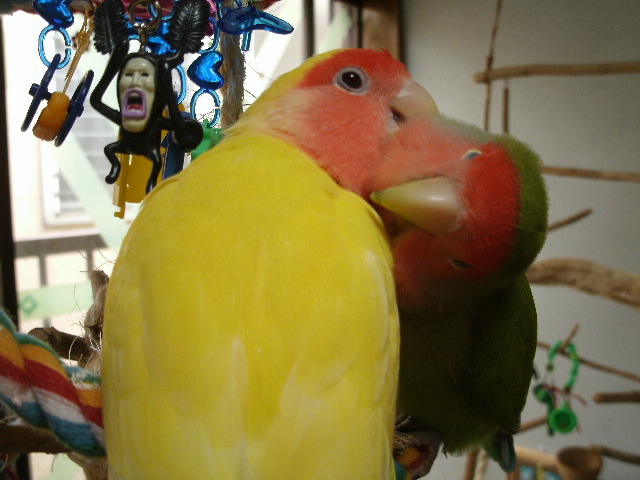 ってことでのりきち横丁ヘビーユーザーのおばさんは、ユーザー投稿写真でも貼ろうかな~~と思ってみたところナイスタイミングでPINぽーちゃんが羽繕いっこを始めましたんで、押した押した、シャッター押したよっ