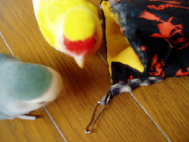うちはテントのヒモを齧って片方だけ落とすので、ついに皮ヒモですよ。なかなか齧り切れないので今の所安泰。金具はアレですね、知恵の輪よろしくはずすのが楽しいらしく、そのうちクリアしていくんで。ボタンインコ、そういうのに果敢に挑戦する性格らしいですわ。